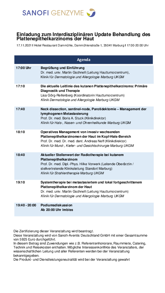 wir möchten Sie herzlich zu der Fortbildungsveranstaltung des Marburger Hauttumorzentrums „Interdisziplinäres Update“…